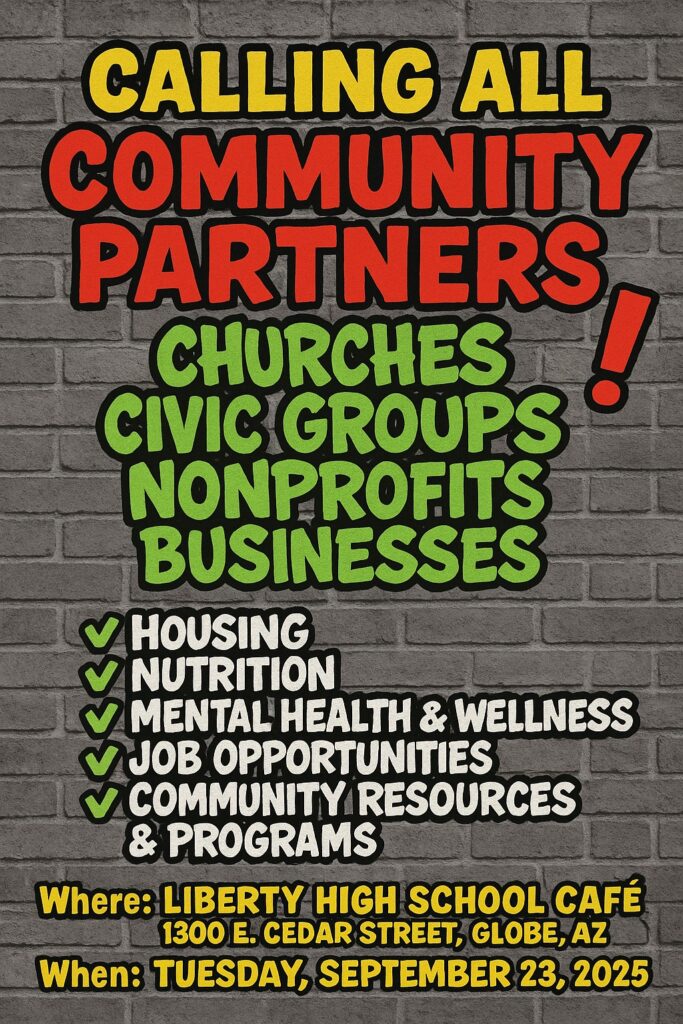 Where: Liberty High School Café – 1300 E. Cedar Street, Globe, AZ
